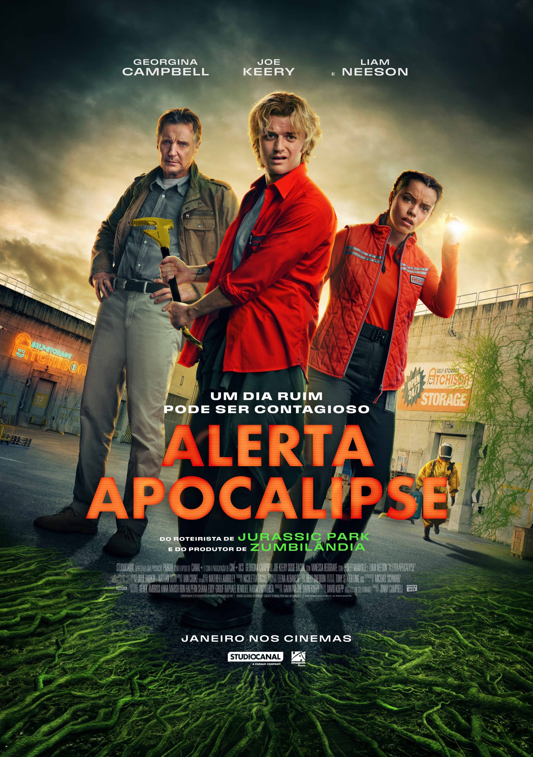 Combinando ação e comédia, Alerta Apocalipse chega aos cinemas em janeiro de 2026 e acaba de ter seu trailer e pôster oficiais divulgados. No filme, os astros Joe Keery, o eterno Steve de Stranger Things e Georgina Campbell, a Tess de Noites Brutais, se unem ao lendário Liam Neeson, ícone dos filmes de ação, para tentar salvar o mundo.