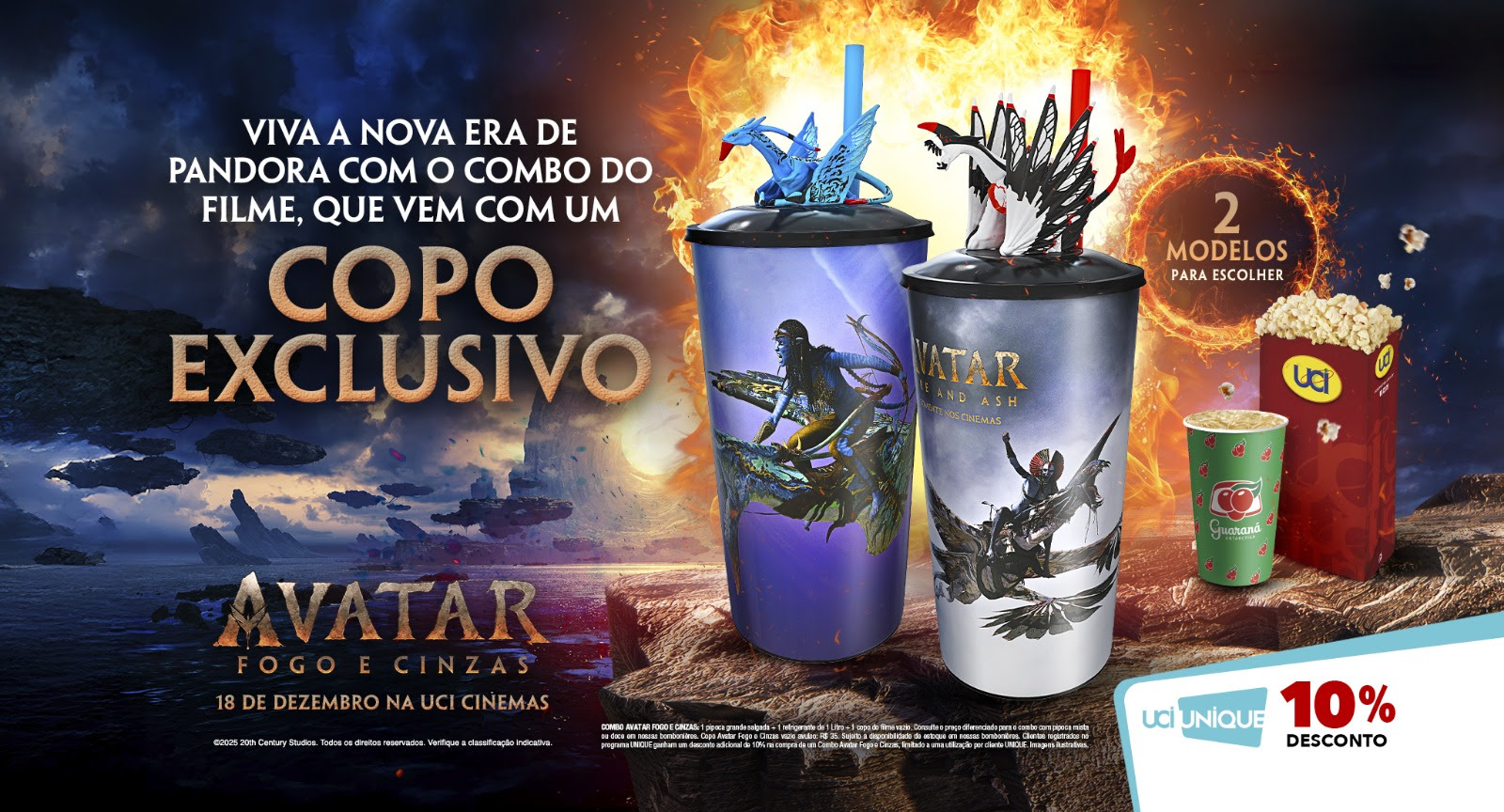 Ver Avatar: Fogo e Cinzas antes da estreia oficial e cercado de outros fãs do universo de James Cameron é a proposta do Fan Event que a UCI realiza no dia 17 de dezembro, um dia antes do lançamento oficial do filme, marcado para 18. E para ficar ainda melhor, nas sessões de pré-estreia, os primeiros fãs garantem brindes especiais, como ticket IMAX numerado, pôster oficial para todos os clientes e pin colecionável exclusivo para participantes do programa de fidelidade da rede, o UCI Unique. Além disso, o público poderá adquirir o combo oficial com copo temático do filme. Os ingressos já estão à venda no site oficial da rede e nas bilheterias.