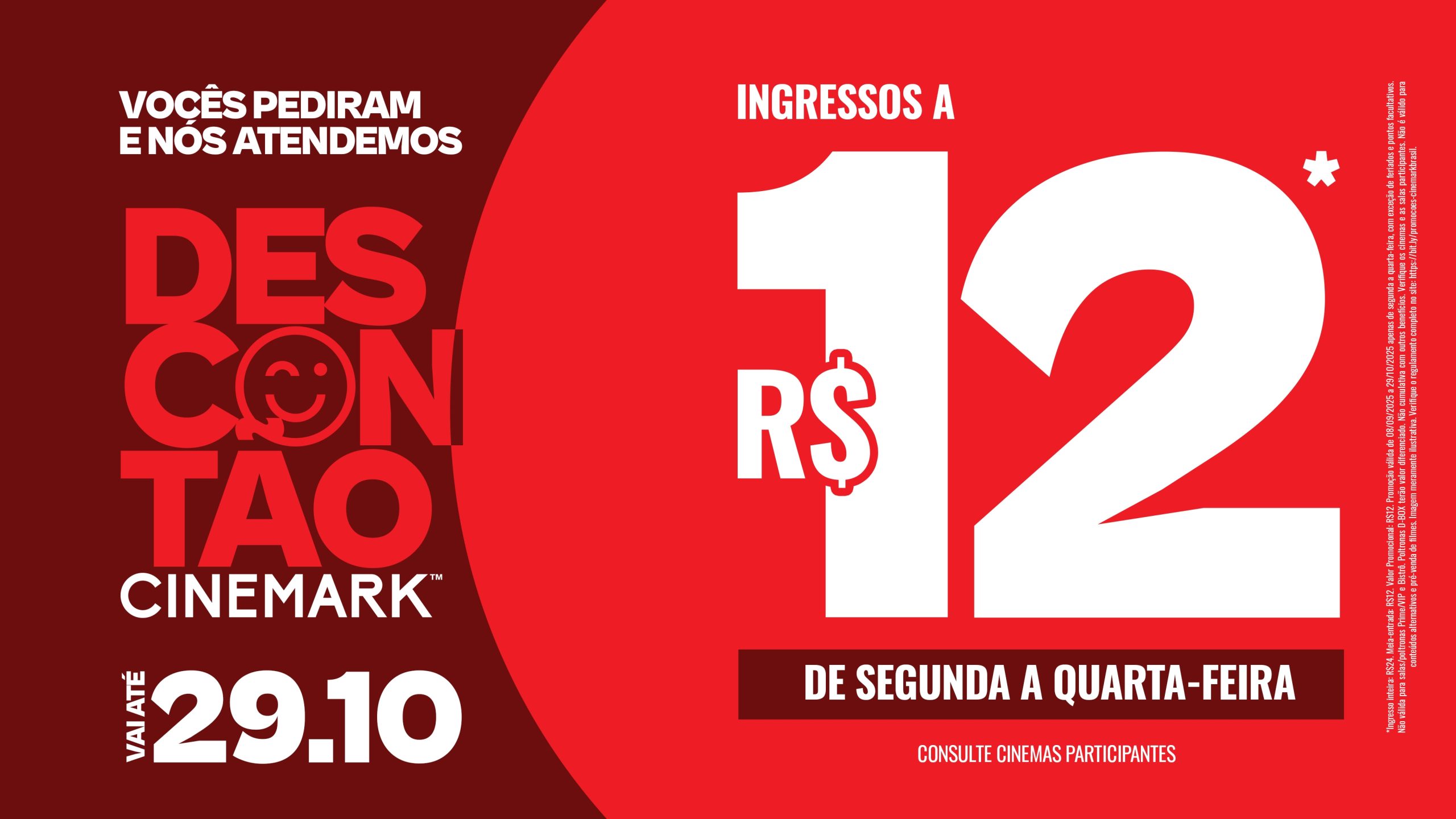 Os cinéfilos que estão aproveitando o Descontão Cinemark podem comemorar, pois a rede acaba de anunciar a prorrogação da promoção que oferece ingressos pelo valor de R$ 12 em sessões 2D, 3D e XD e R$ 20 para Poltronas D-BOX, de segunda a quarta-feira, até o dia 29 de outubro. A promoção é válida em unidades selecionadas da Grande São Paulo. Salas Prime e conteúdos alternativos não participam da campanha. Consulte o site oficial da rede para mais informações.