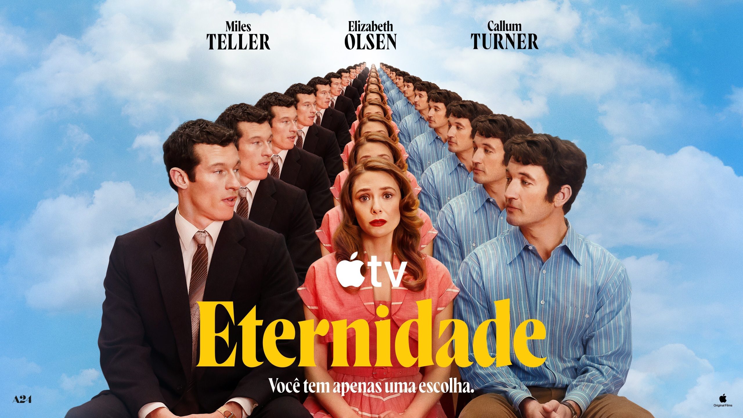 Um longa-metragem da Apple Original Films, em parceria com a A24, a comédia romântica Eternidade, de David Freyne, estreia mundialmente em streaming no Apple TV na sexta-feira, 13 de fevereiro. Desde seu lançamento nos cinemas, com distribuição mundial pela A24, o filme com classificação Certified Fresh do Rotten Tomatoes tem sido elogiado como um “sucesso de bilheteria”, “inteligente, sensacional e digno de suspiros” e “um dos filmes mais puros e doces que você vai ver durante todo o ano”.