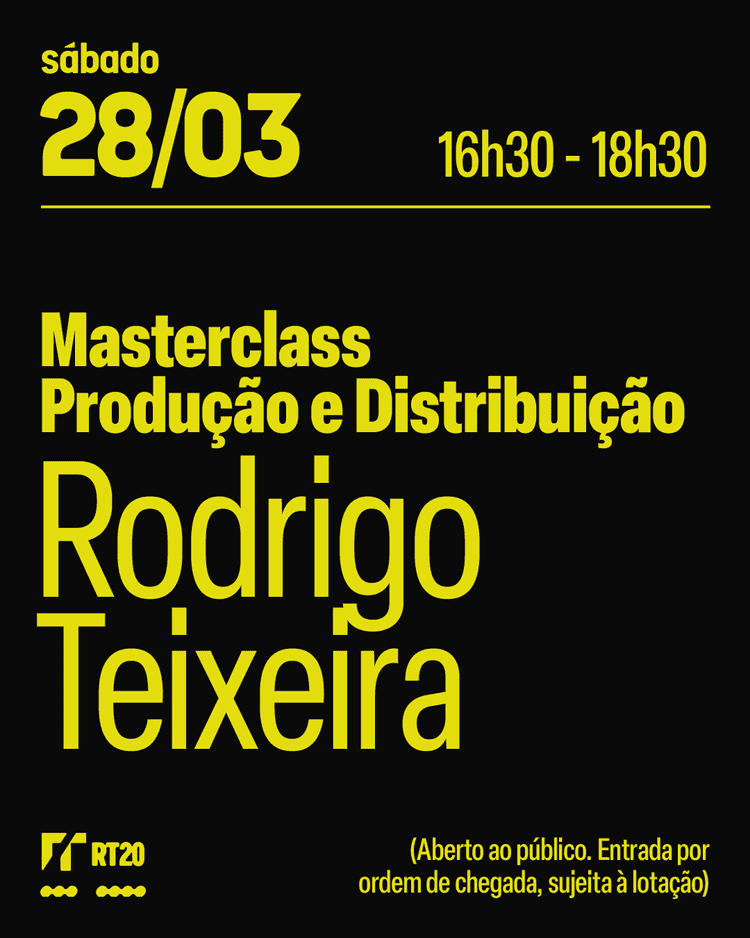 Encerrando a programação, no dia 28, o produtor e fundador da RT Features, Rodrigo Teixeira, conduz a masterclass de Produção e Distribuição. Um dos produtores brasileiros com maior atuação internacional, esteve à frente de títulos como Me Chame Pelo Seu Nome (2017), vencedor do Oscar de Melhor Roteiro Adaptado, A Vida Invisível, O Farol, Ad Astra e Ainda Estou Aqui, pelo qual se tornou o primeiro produtor brasileiro indicado ao Oscar de Melhor Filme.