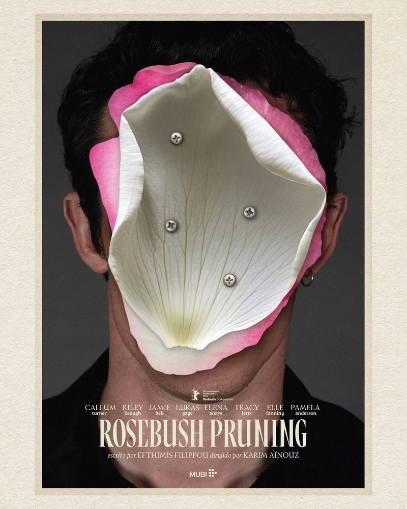 Distribuidora global, serviço de streaming e produtora, a MUBI apresenta o primeiro cartaz de Rosebush Pruning, o mais recente longa-metragem de Karim Aïnouz (Madame Satã, Motel Destino, O Jogo da Rainha, A Vida Invisível). Selecionado para a competição da 76ª edição do Festival Internacional de Cinema de Berlim, o filme terá sua estreia mundial neste sábado, 14 de fevereiro, às 19h (horário de Berlim), no Berlinale Palast. No elenco, estão Callum Turner (Mestres do Ar, Remando para o Ouro), Riley Keough (Daisy Jones & The Six, Zola), Jamie Bell (Todos Nós Desconhecidos, Rocketman), Lukas Gage (The White Lotus, Euphoria) e Elena Anaya (A Pele Que Habito, MotherFatherSon), além de Tracy Letts (Lady Bird: A Hora de Voar, Ford vs Ferrari), Elle Fanning (Valor Sentimental, Um Completo Desconhecido) e Pamela Anderson (The Last Showgirl, Corra Que a Polícia Vem Aí!).