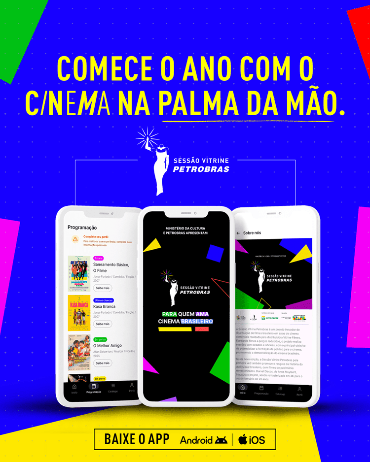 Com o lançamento do aplicativo, disponível a partir de 5 de janeiro nas lojas da Apple e Android, o projeto amplia sua presença digital e reforça seu compromisso de aproximar o público das salas de cinema e do audiovisual brasileiro.