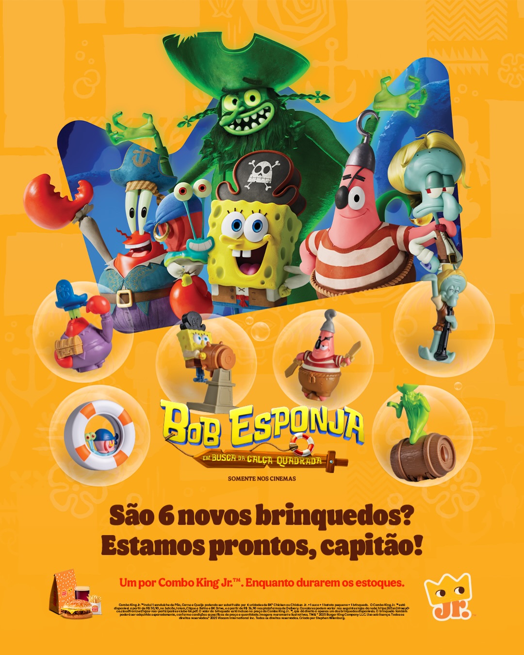 Bob Esponja: Em Busca da Calça Quadrada chega aos cinemas em 25 de dezembro de 2025 e o BK fez mais uma collab com a Paramount para levar ao Combo King Jr. seis novos brinquedos dos personagens mais queridos da Fenda do Biquíni.