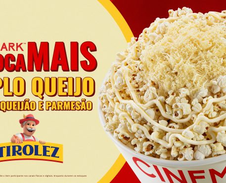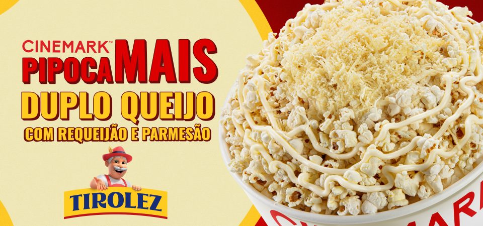 O grande destaque é a Pipoca Mais Duplo Queijo Tirolez, que estreia nas 85 unidades da Cinemark em todo o Brasil. A receita combina o sabor marcante do Parmesão Tirolez com a cremosidade do Requeijão Tirolez, criando uma pipoca única e deliciosa – perfeita para quem quer dar um upgrade na sessão de cinema.